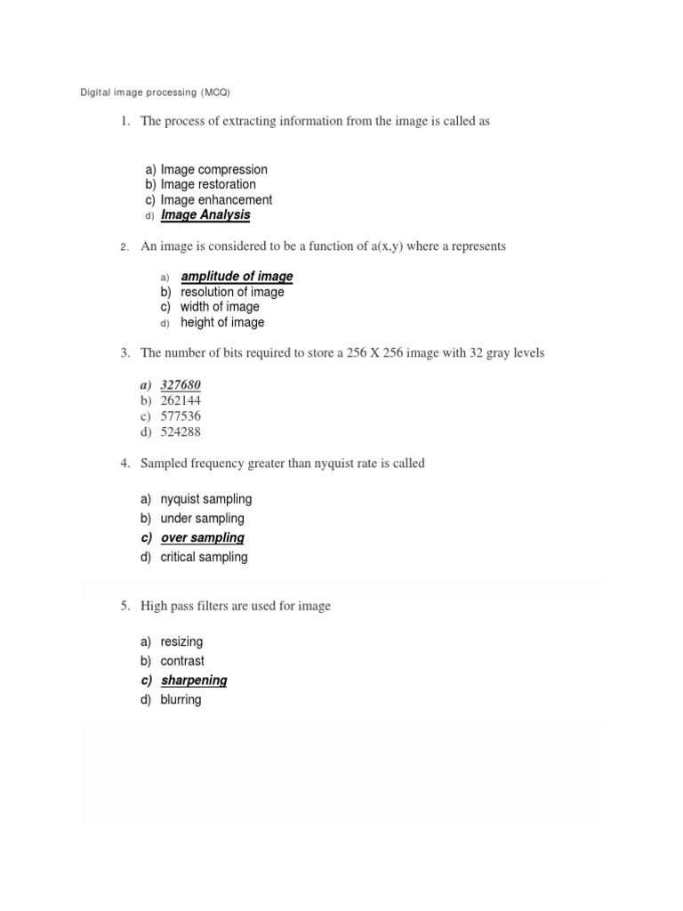 . Computer 100 mcqs - StuDocu Latest Digital Image Processing MCQs - Image Enhancement MCQs ( Digital Image Processing ) MCQs » Educativz Digital Image Processing Multiple Choice Questions Unit Wise | Image Resolution | Sampling (Signal Processing)